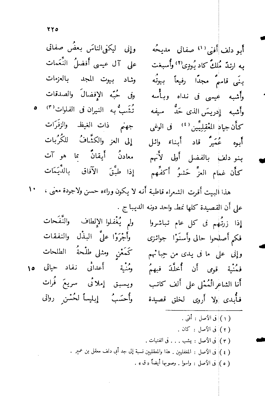 أبو دلف أفنى صفاتي مديحه ... وإني ليكفي الناس بعض صفاتي