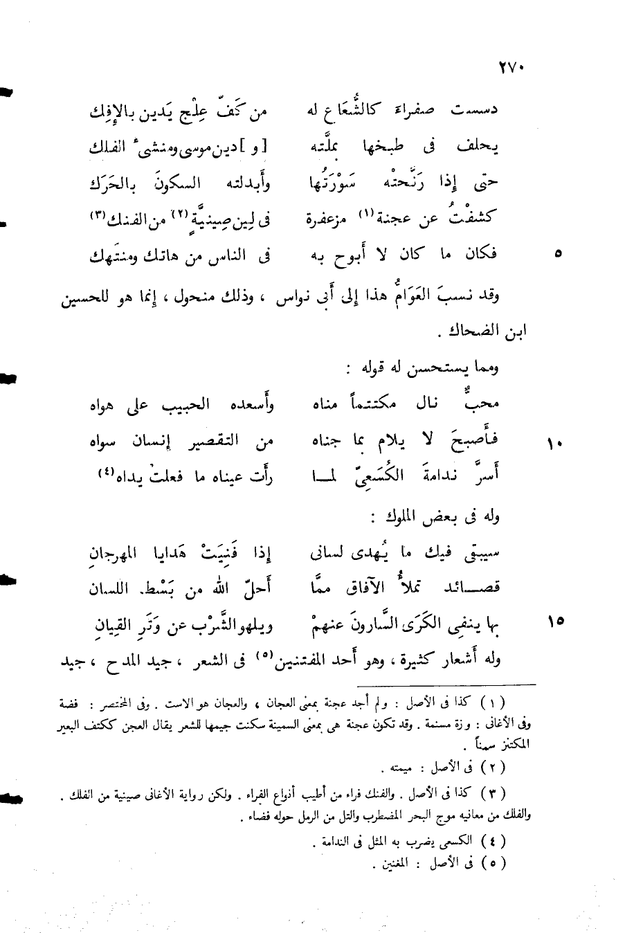 وقد نسب العوام هذا أبي نواس، وذلك منحول، إنما هو للحسين ابن الضحاك.