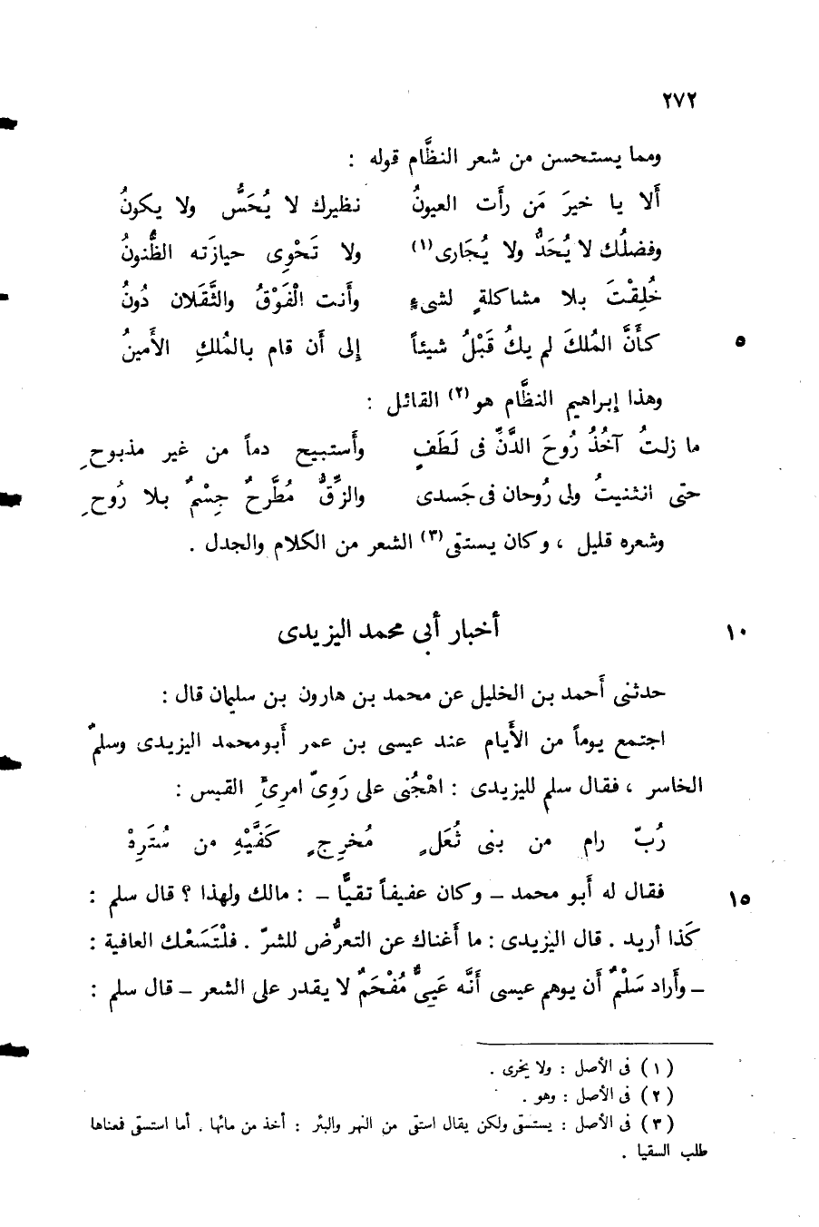 حدَّثني أحمد الخليل عن محمد بن هارون بن سليمان قال: اجتمع يوماً من الأيام عند عيسى بن عمر أبو محمد اليزيدي وسلم الخاسر، فقال سلم لليزيدي: اهجني على روى امرئ القيس: