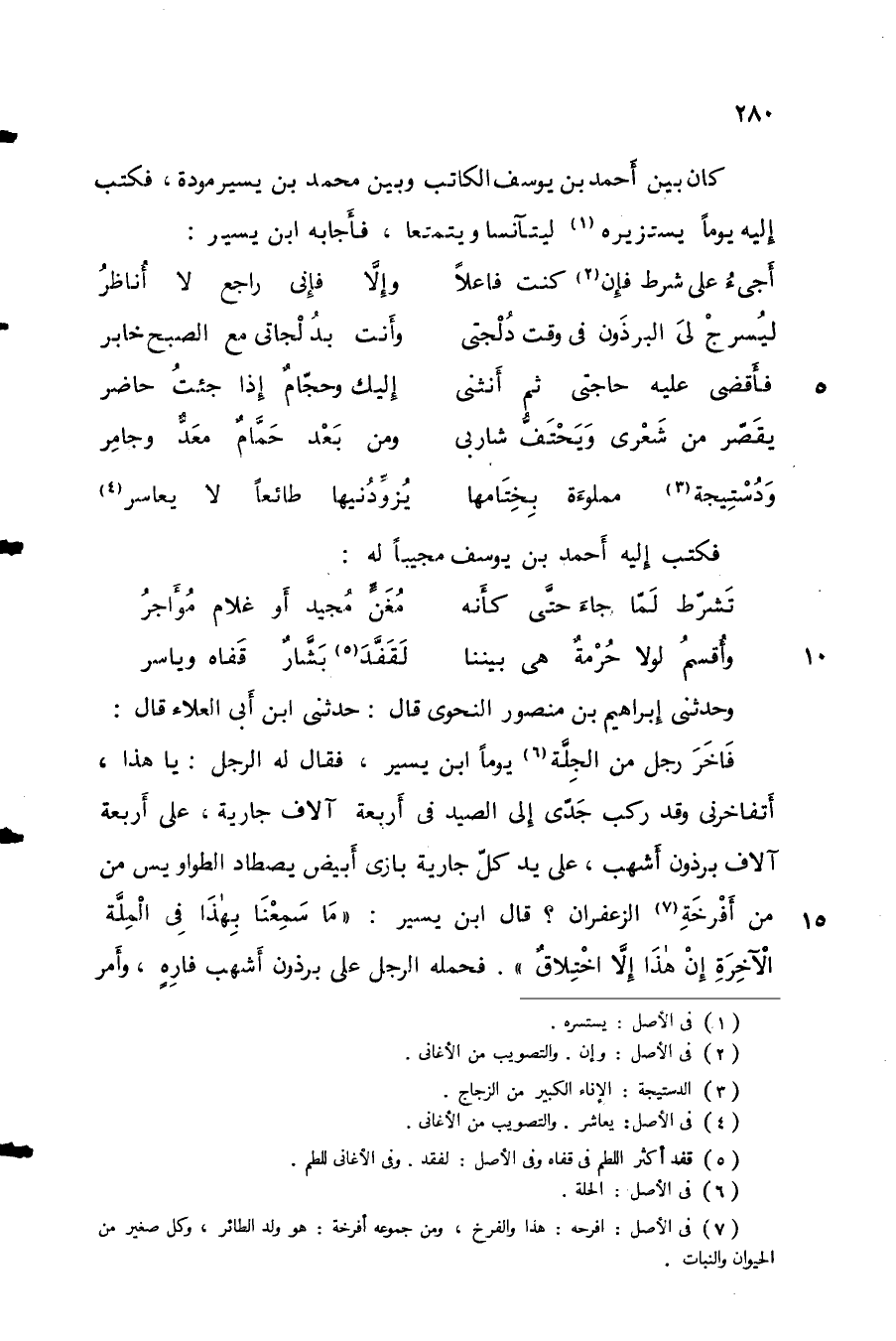 كان بين أحمد بن يوسف الكاتب وبين محمد بن يسير مودة، فكتب إليه يوماً يستزيره ليتآنسا ويتمتعا، فأجابه ابن يسير: