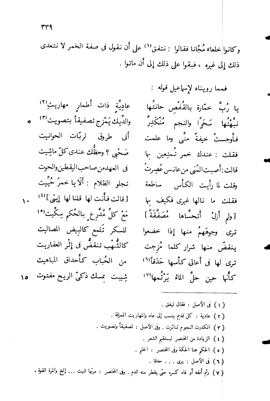 وكانوا خلعاءَ مجاناً فقالوا: نتفق على أن نقول في صفة الخمر لا نتعدى ذلك إلى غيره، فبقوا على ذلك إلى أن ماتوا.