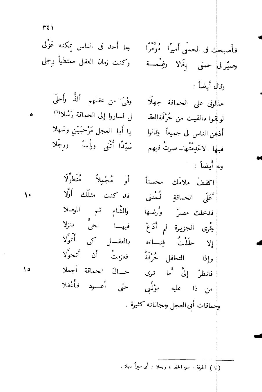 وصيّر لي حمقي بغالاً وغلمة ... وكنت زمان العقل ممتطياً رِجلي
