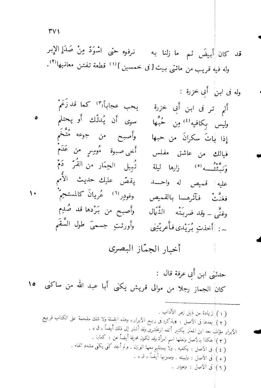 حدثني ابن أبي عرفة قال: كان الجماز رجلاً من موالي قريش يكنى أبا عبد الله من ساكني