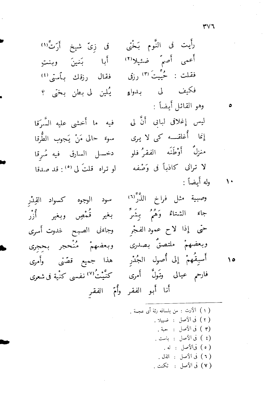 جاء الشتاءُ وهم بِشَرِّ ... بغير ٌُمص وبغير أُزر