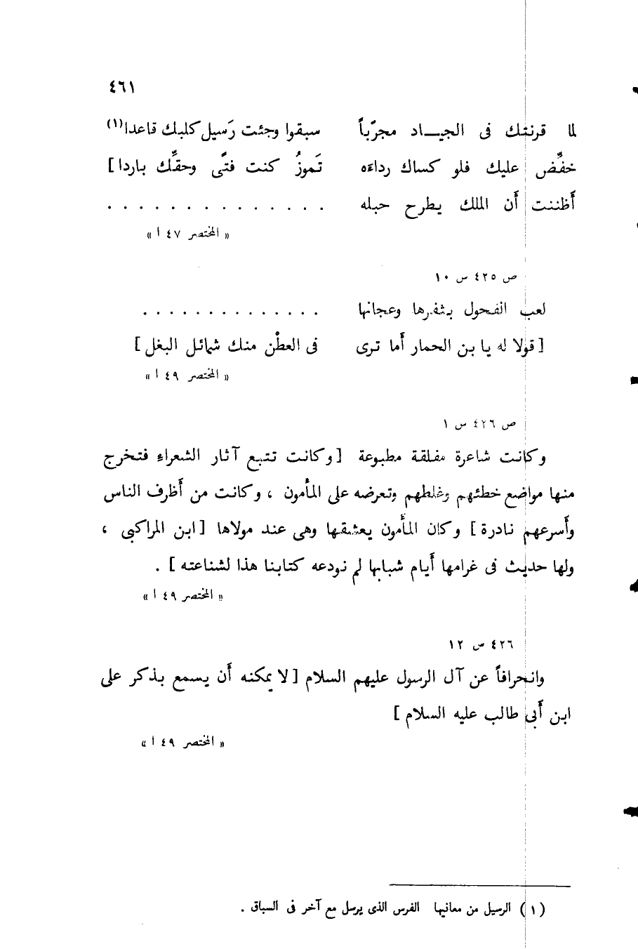 وكان شاعرة مفلقة مطبوعة وكانت تتبع آثار الشعراء فتخرج منها موضع خطئهم وغلطهم وتعرضه على المأمون، وكانت من أظرف الناس وأسرعهم نادرة، وكان المأمون يعشقها وهي عند مولاها ابن المراكبي، ولها حديث في غرامها أيام شبابها لم نودعه كتابنا هذا لشناعته.