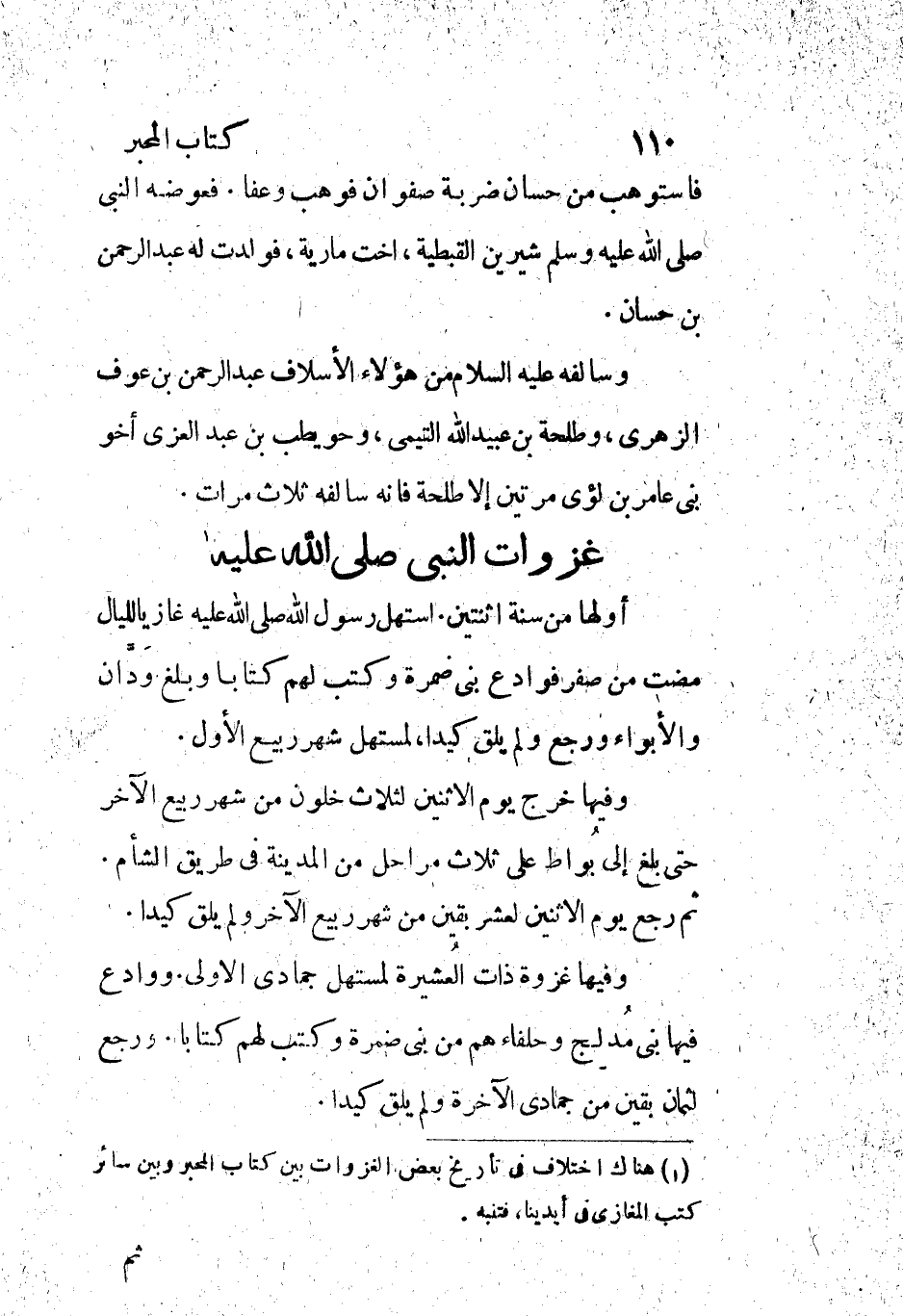 [1] هناك اختلاف فى تأريخ بعض الغزوات بين كتاب المحبر وبين سائر كتب المغازي فى أيدينا، فتنبه.