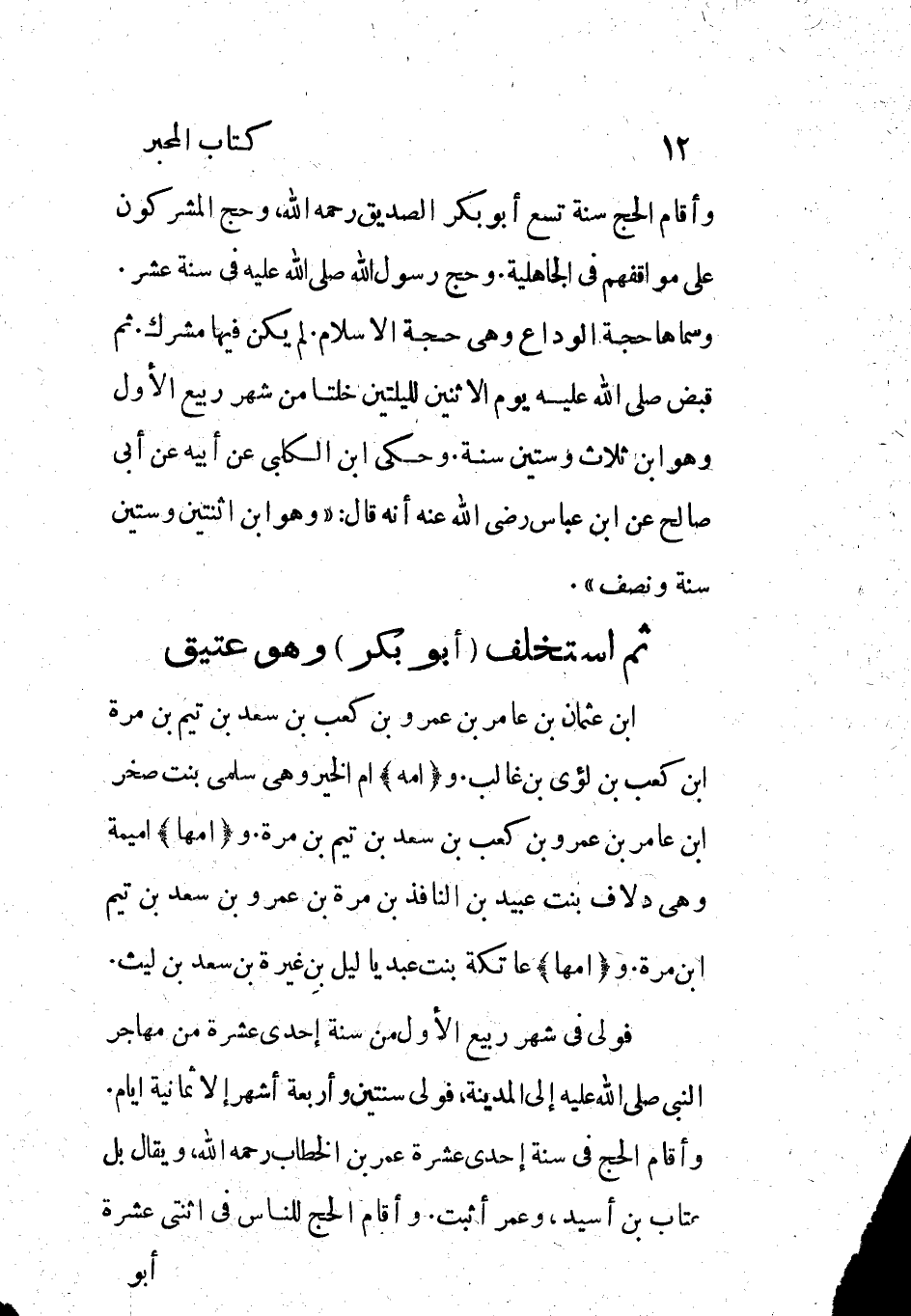 وأقام الحج في سنة إحدى عشرة عمر بن الخطاب رحمه الله، ويقال بل عتاب بن أسيد، وعمر أثبت. وأقام الحج للناس في اثنتي عشرة