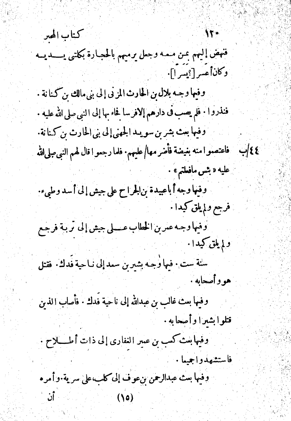 وفيها بعث غالب بن عبد الله إلى ناحية فدك. فأصاب الذين قتلوا بشيرا وأصحابه.