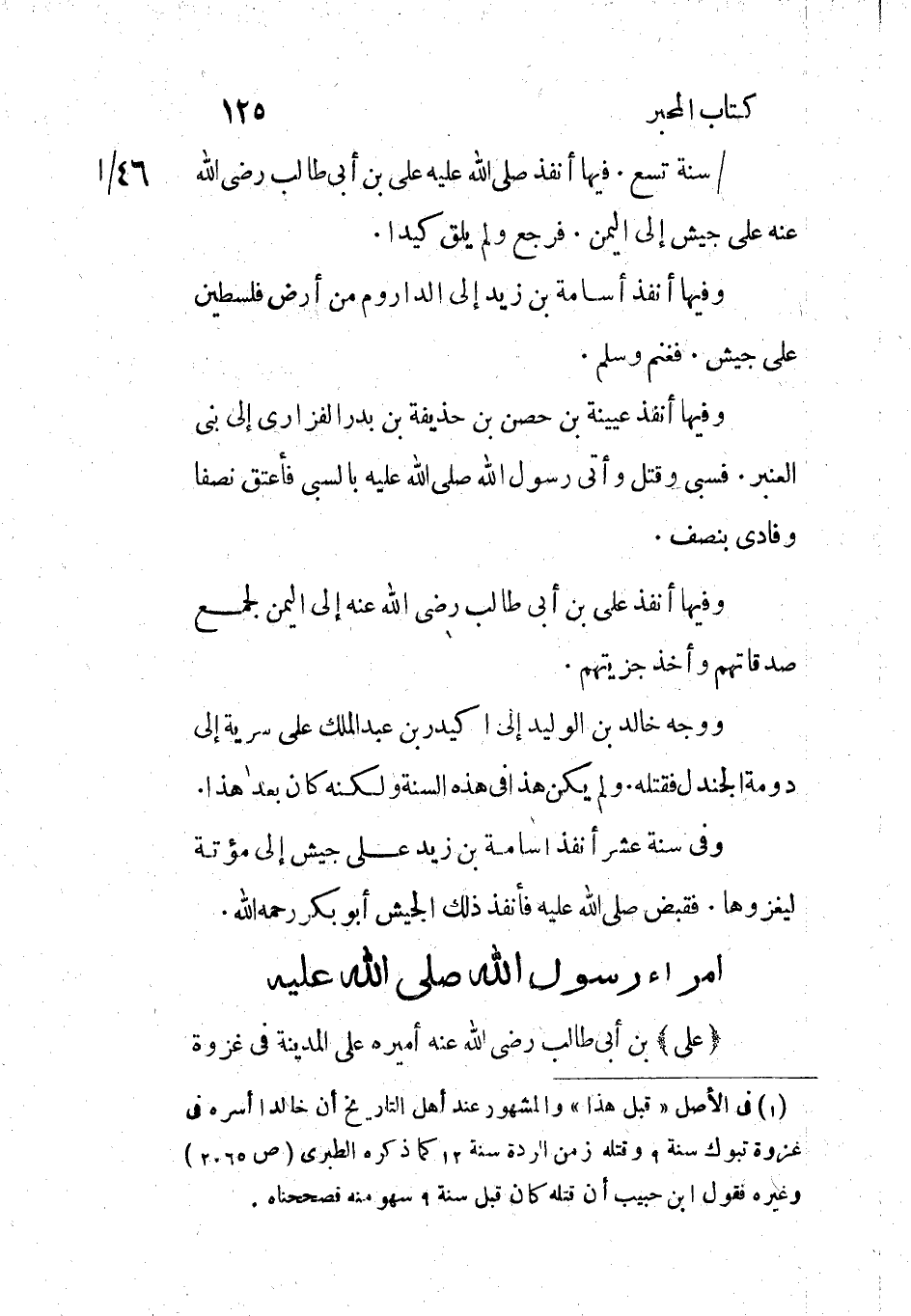 [1] فى الأصل «قبل هذا» والمشهور عند أهل التاريخ أن خالد أسره فى غزوة تبوك سنة 9 وقتله زمن الردة سنة 12 كما ذكره الطبري (ص 2065) وغيره فقول ابن حبيب أن قتله كان قبل سنة 9 سهو منه فصححناه.