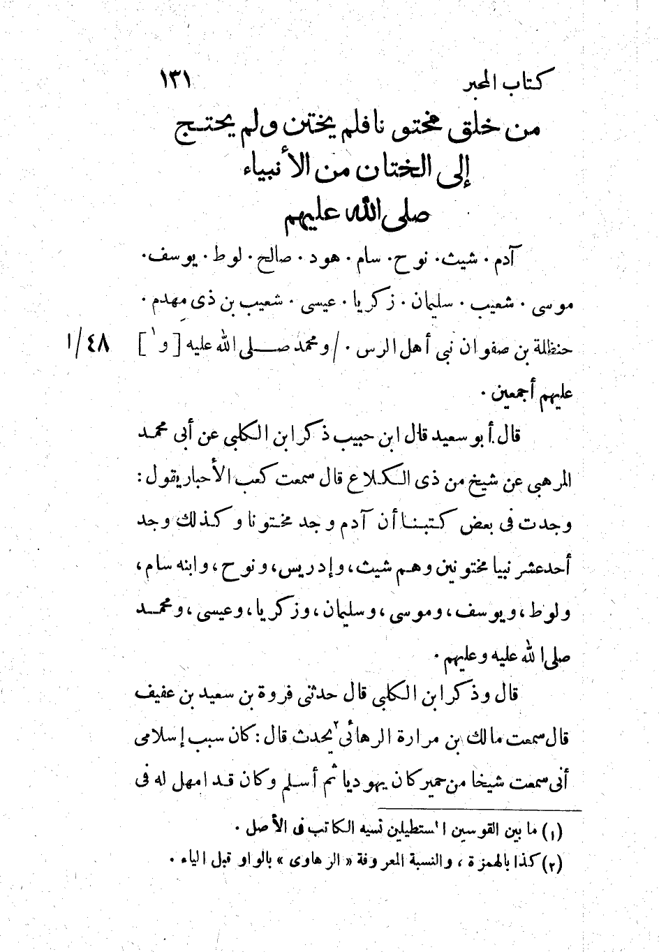 حنظلة بن صفوان نبي أهل الرس. / ومحمد صلى الله عليه [و [1]] عليهم أجمعين.