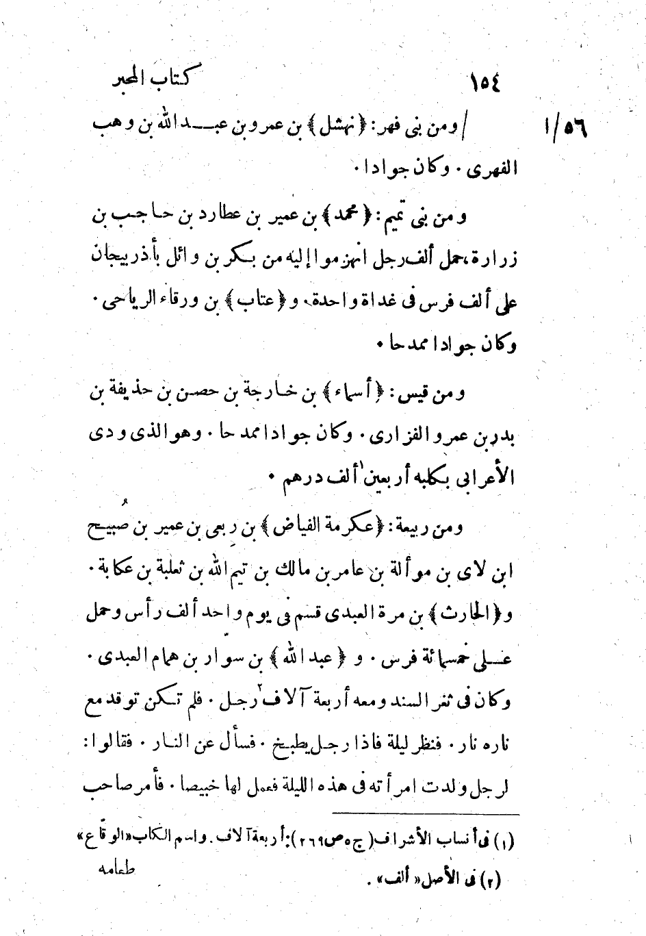 / ومن بنى فهر: (نهشل) بن عمرو بن عبد الله بن وهب الفهري. وكان جوادا.
