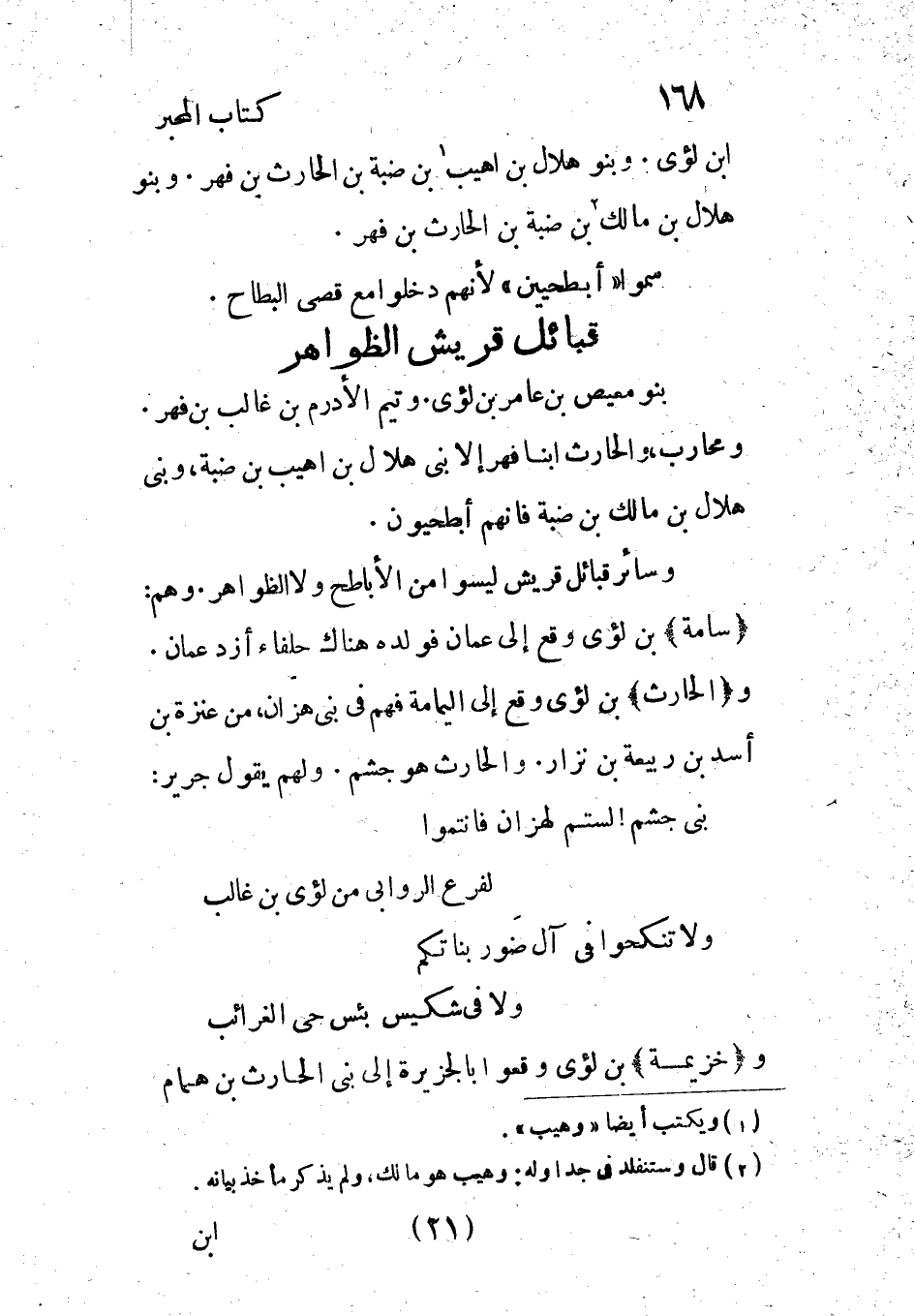 ابن لؤي. وبنو هلال بن أهيب [1] بن ضبة بن الحارث بن فهر. وبنو هلال بن مالك [2] بن ضبة بن الحارث بن فهر.