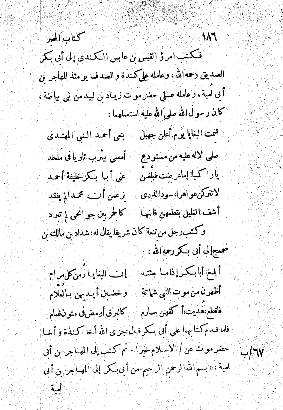 فلما قدم كتابهما على أبي بكر قال: جزى الله أخا كندة وأخا حضرموت عن/ الإسلام خيراً. ثم كتب إلى المهاجر بن أبي امية: «بسم الله الرحمن الرحيم. من أبي بكر إلى المهاجر بن أبى