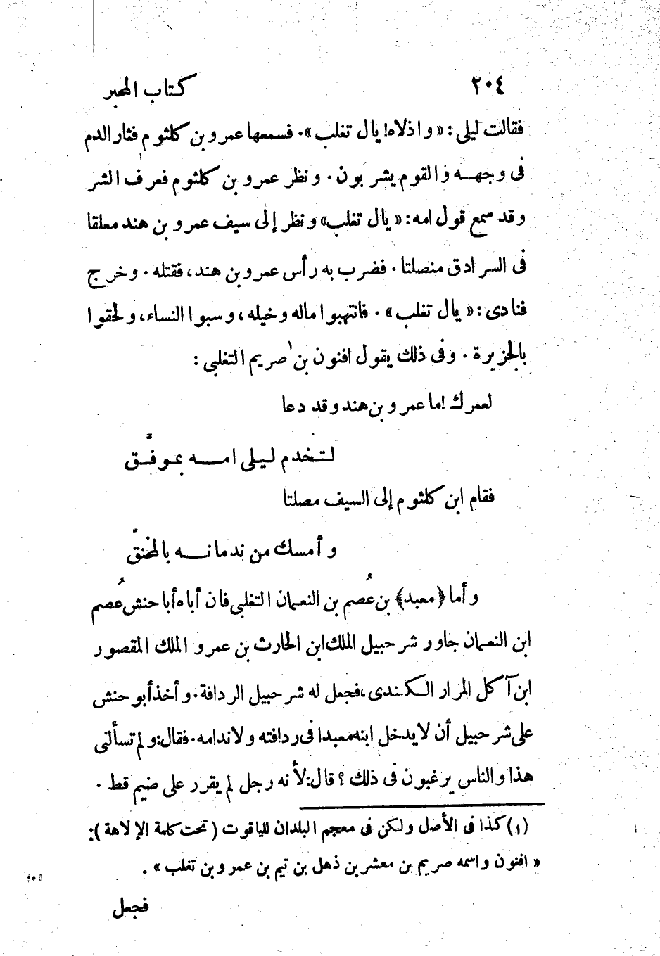 «افنون واسمه صريم بن معشر بن ذهل بن تيم بن عمرو بن تغلب» .