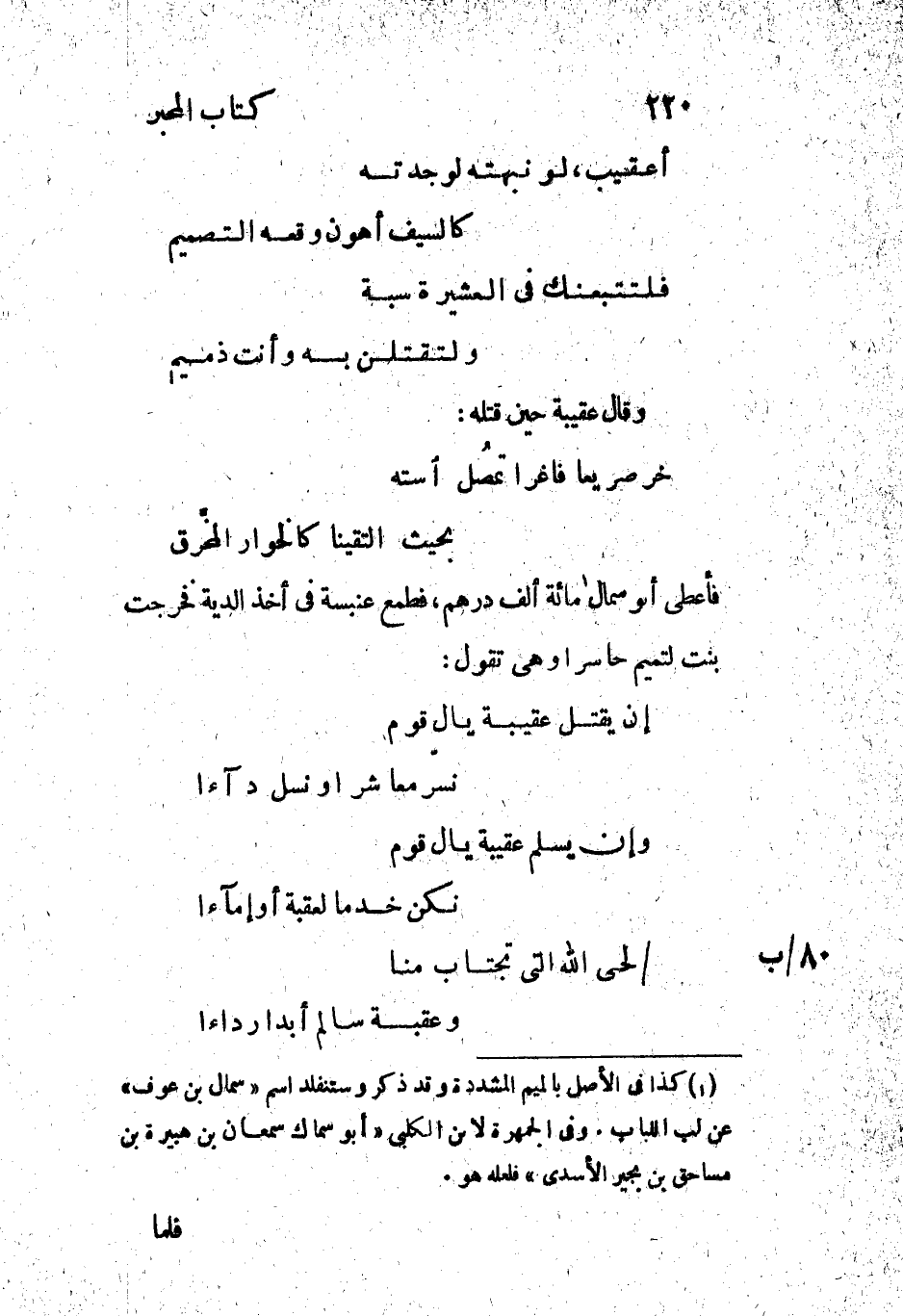 [1] كذا فى الأصل بالميم المشددة وقد ذكر وستنفلد اسم «سمال بن عوف» عن لب اللباب. وفى الجمهرة لابن الكلبي «أبو سماك سمعان بن هبيرة بن مساحق بن بجير الأسدى» فلعله هو.