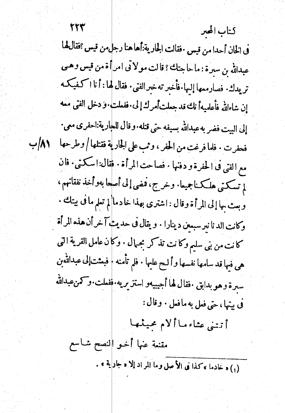 [1] «خادما» كذا فى الأصل وما المراد إلا «جارية» .