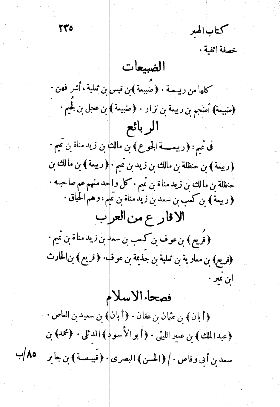 (ضبيعة) أضجم بن ربيعة بن نزار. (ضبيعة) بن عجل بن لجُيم.
