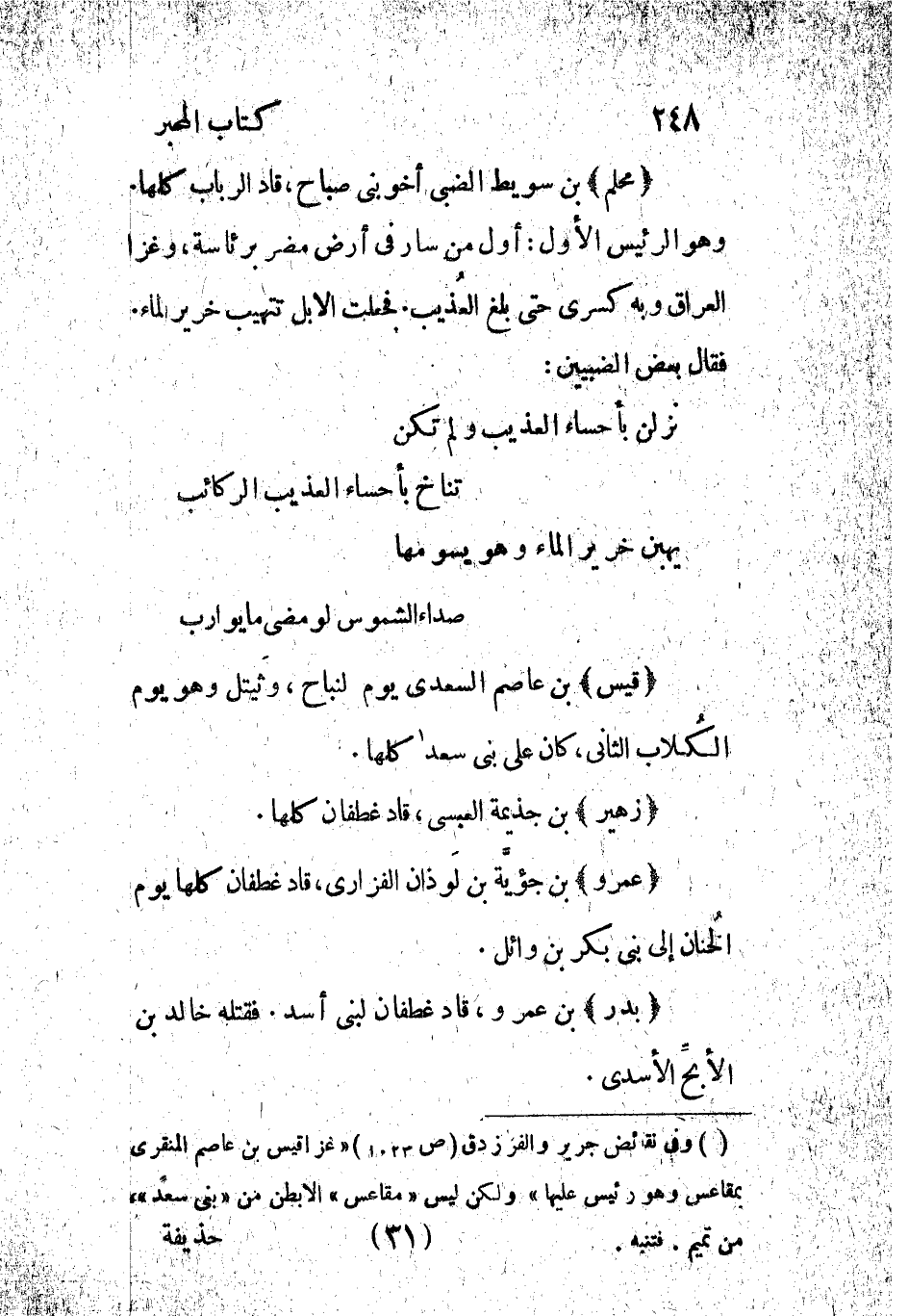 [1] وفى نقائض جرير والفرزدق (ص 1023) «غزا قيس بن عاصم المنقري بمقاعس وهو رئيس عليها» ولكن ليس «مقاعس» إلا بطن من «بنى سعد» ، من تميم. فتنبه. (31)