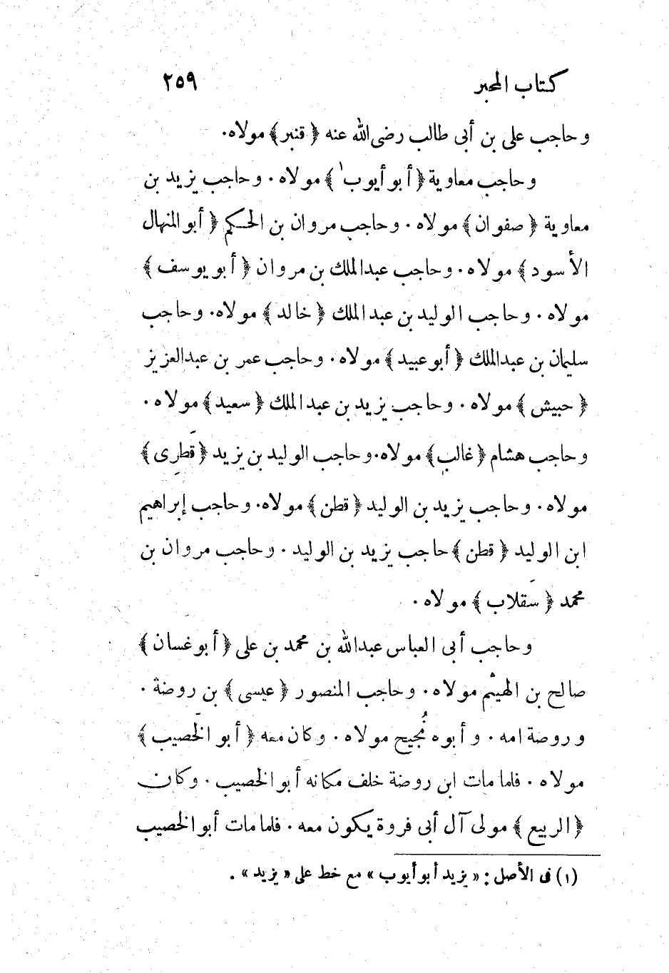 وحاجب أبى العباس عبد الله بن محمد بن علي (أبو غسان) صالح بن الهيثم مولاه. وحاجب المنصور (عيسى) بن روضة.