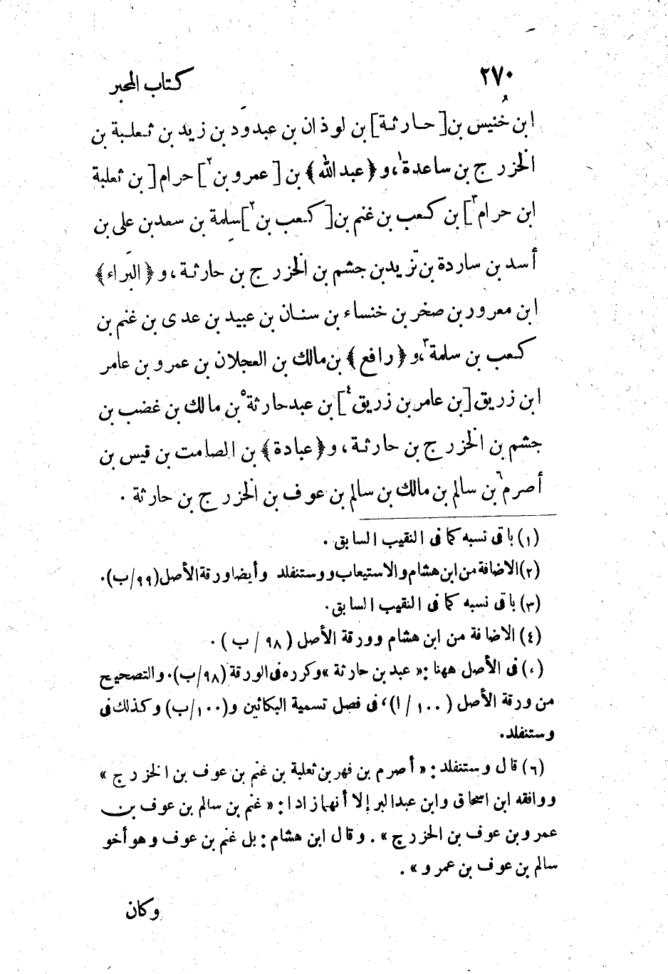 [5] فى الأصل ههنا: «عبد بن حارثة» وكرره فى الورقة (98/ ب) . والتصحيح من ورقة الأصل (100/ 1) ، فى فصل تسمية البكائين و (100/ ب) وكذلك فى وستنفلد.