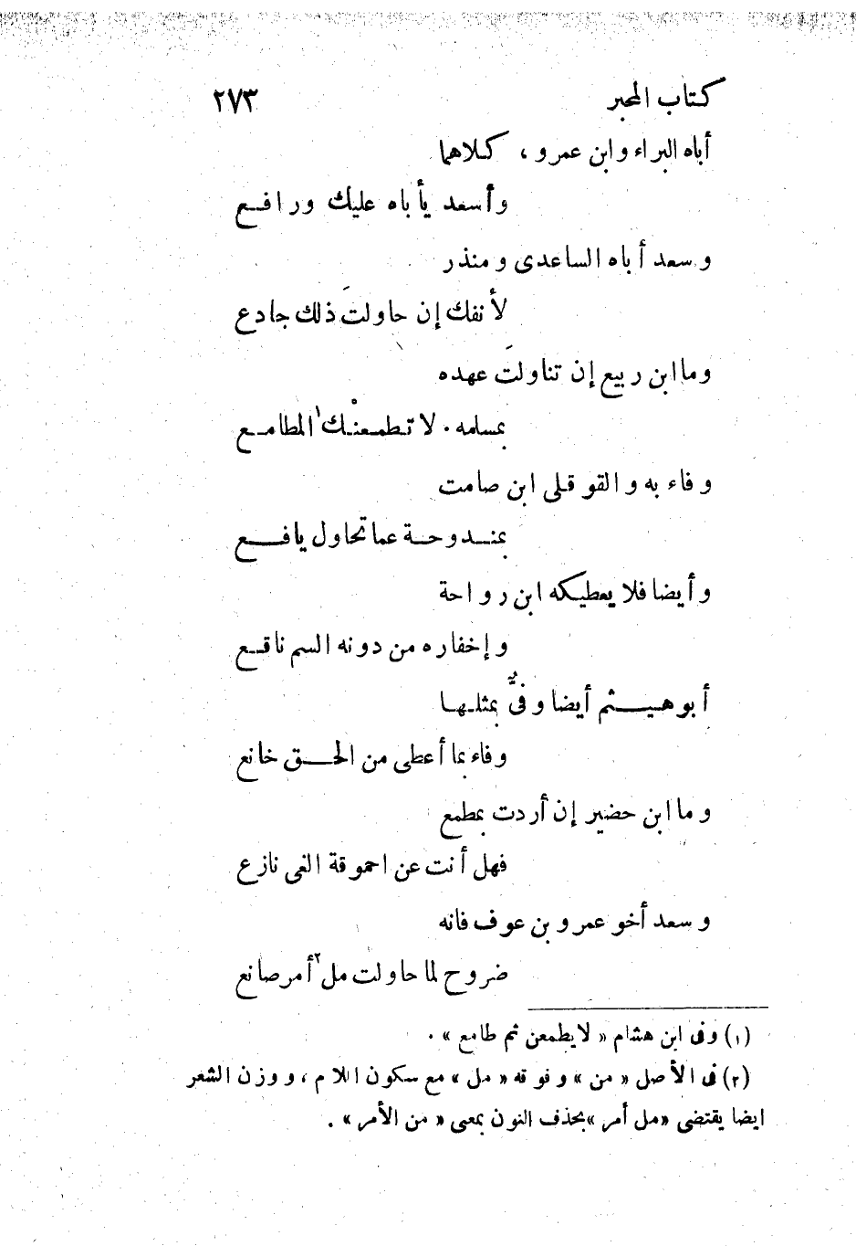 [2] فى الأصل «من» وفوقه «مل» مع سكون اللام، ووزن الشعر ايضا يقتضى «مل أمر» بحذف النون بمعنى «من الأمر» .