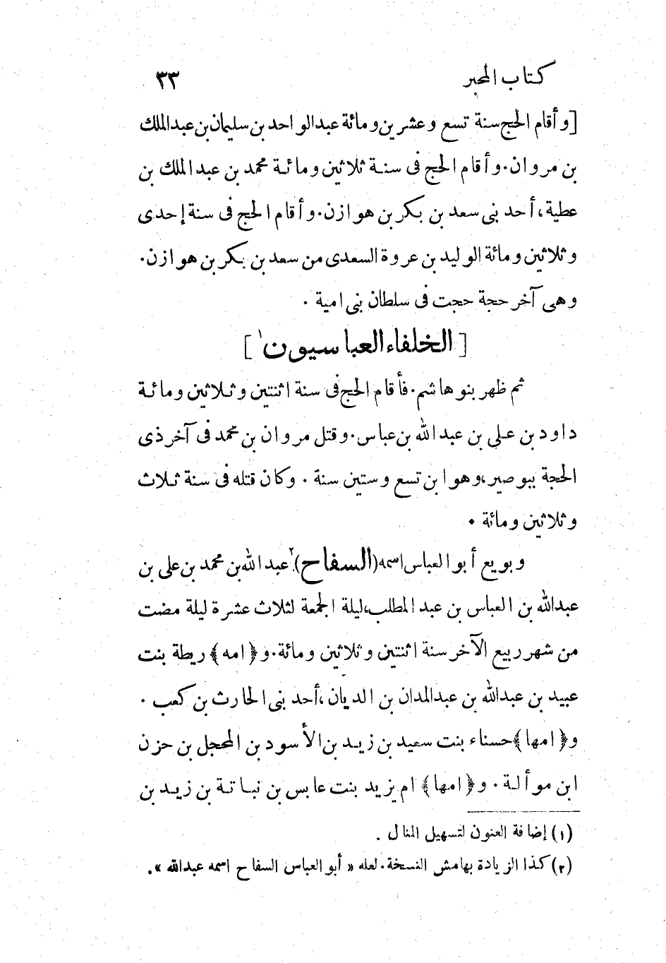 [2] كذا الزيادة بهامش النسخة. لعله «أبو العباس السفاح اسمه عبد الله» .