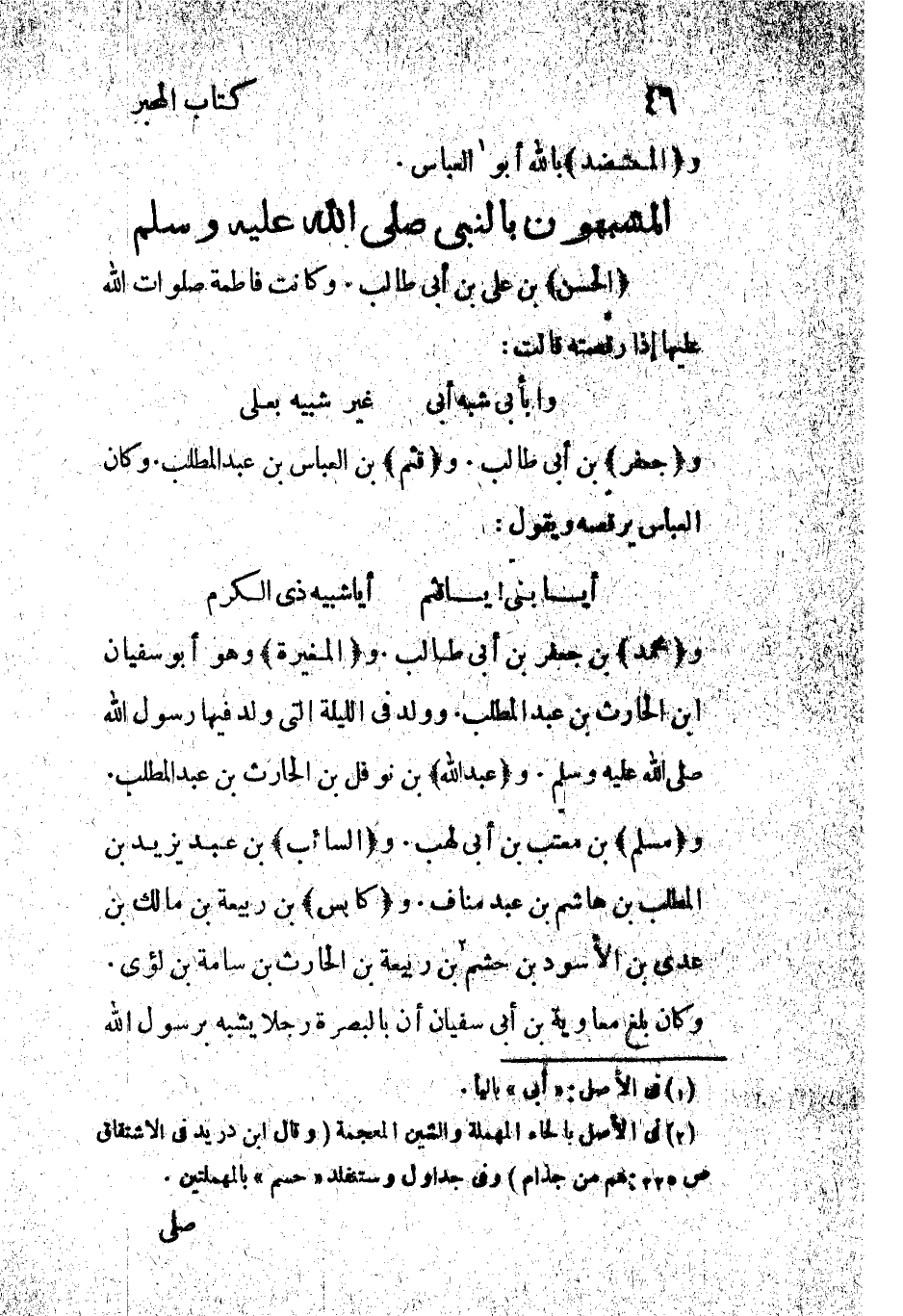 [1] فى الأصل بالحاء المهملة والشين المعجمة (وقال ابن دريد فى الاشتقاق ص 225: هم من جذام) وفى جداول وستنفلد «حسم» بالمهملتين.