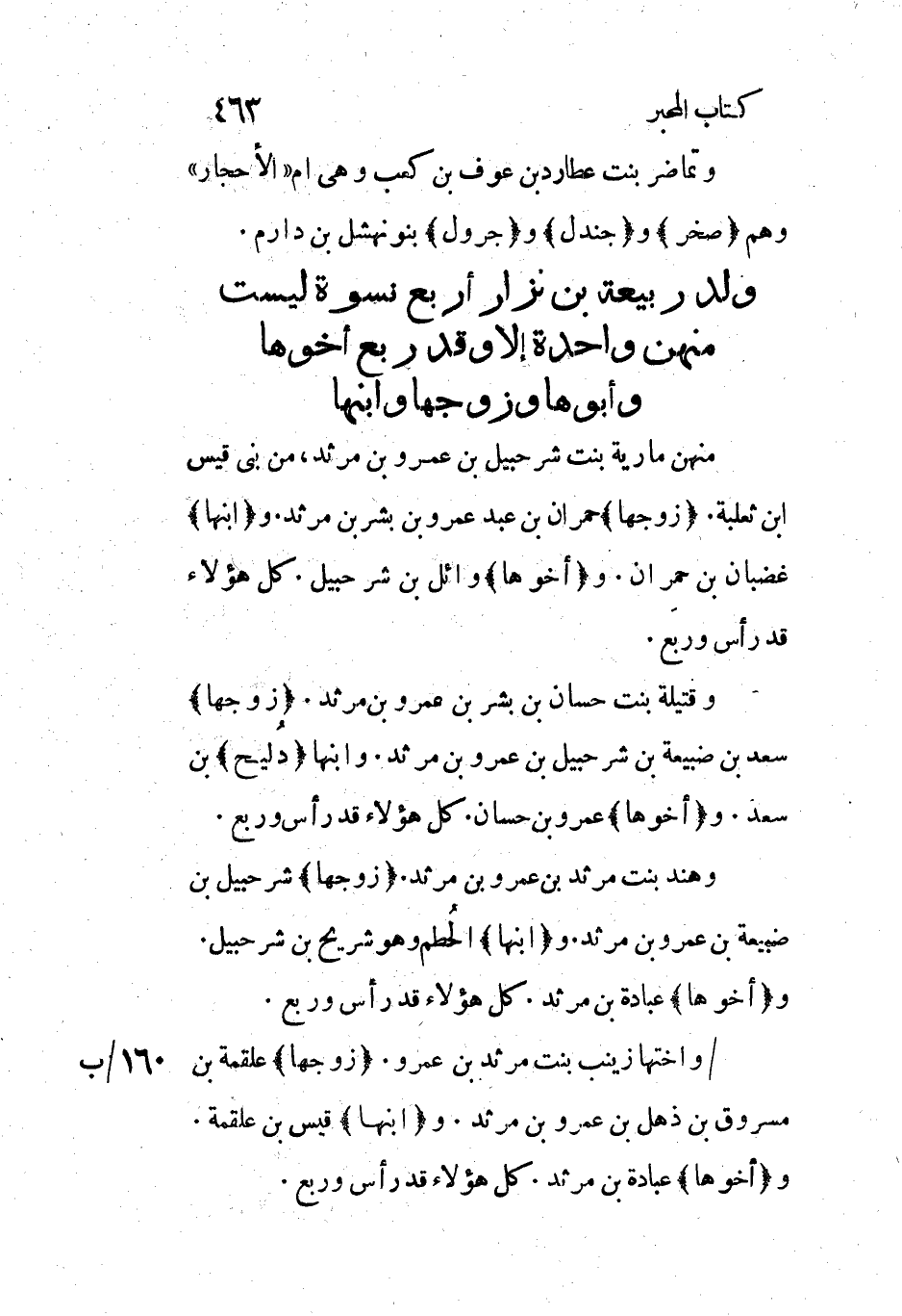 وتماضر بنت عطارد بن عوف بن كعب وهي ام «الأحجار» وهم (صخر) و (جندل) و (جرول) بنو نهشل بن دارم.
