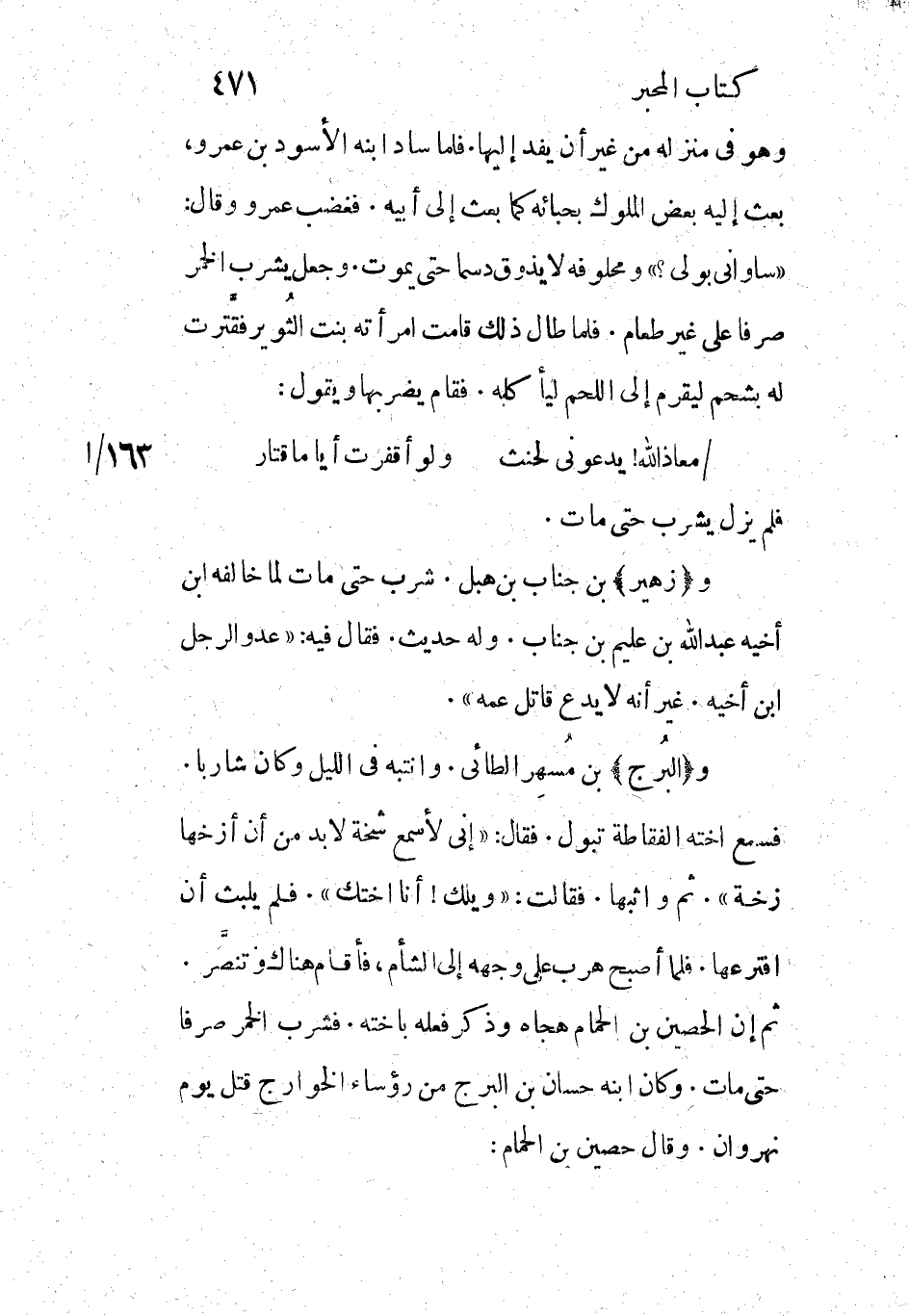 و (البرج) بن مُسهر الطائي. وانتبه في الليل وكان شاربا.