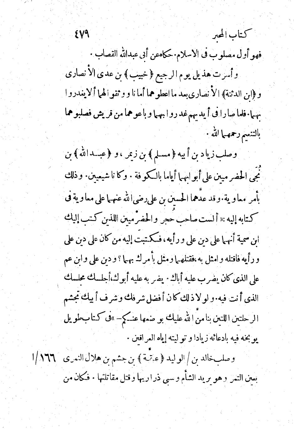 وصلب خالد بن/ الوليد (عقَّة) بن جشم بن هلال النمري بعين التمر وهو يريد الشأم وسبى ذراريها وقتل مقاتلتها. فكان من