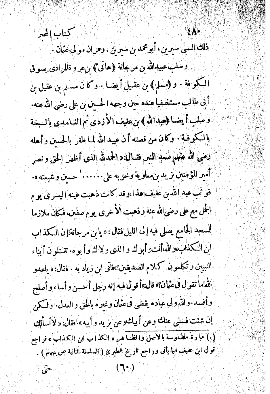 [1] عبارة مطموسة بالأصل والظاهر «الكذاب ابن الكذاب» فراجع قول ابن عفيف فيما يأتى وراجع تاريخ الطبري (السلسلة الثانية ص 373) .