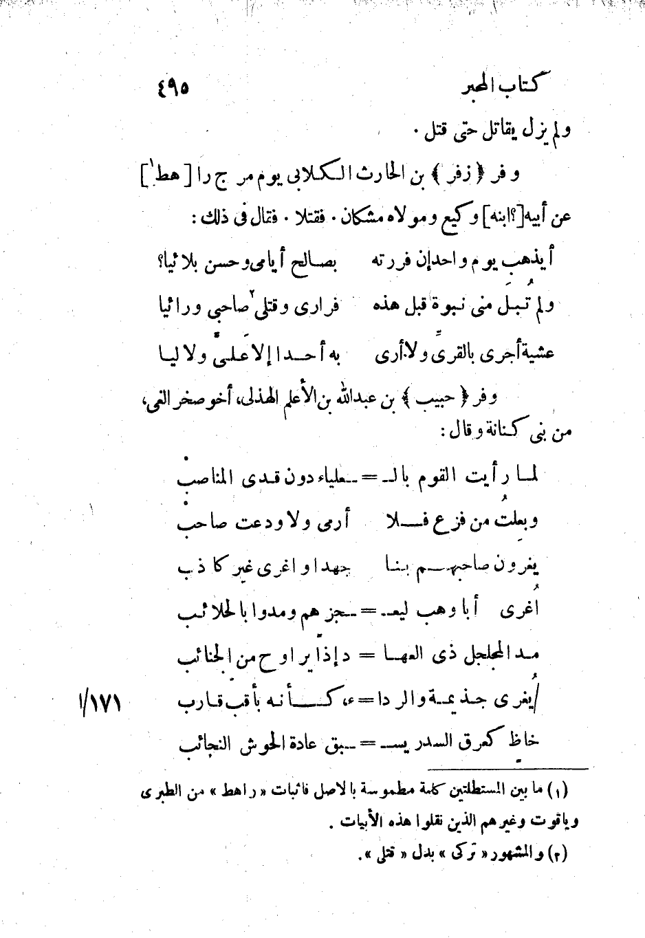 [1] ما بين المستطلتين كلمة مطموسة بالأصل فاثبات «راهط» من الطبري وياقوت وغيرهم الذين نقلوا هذه الأبيات.
