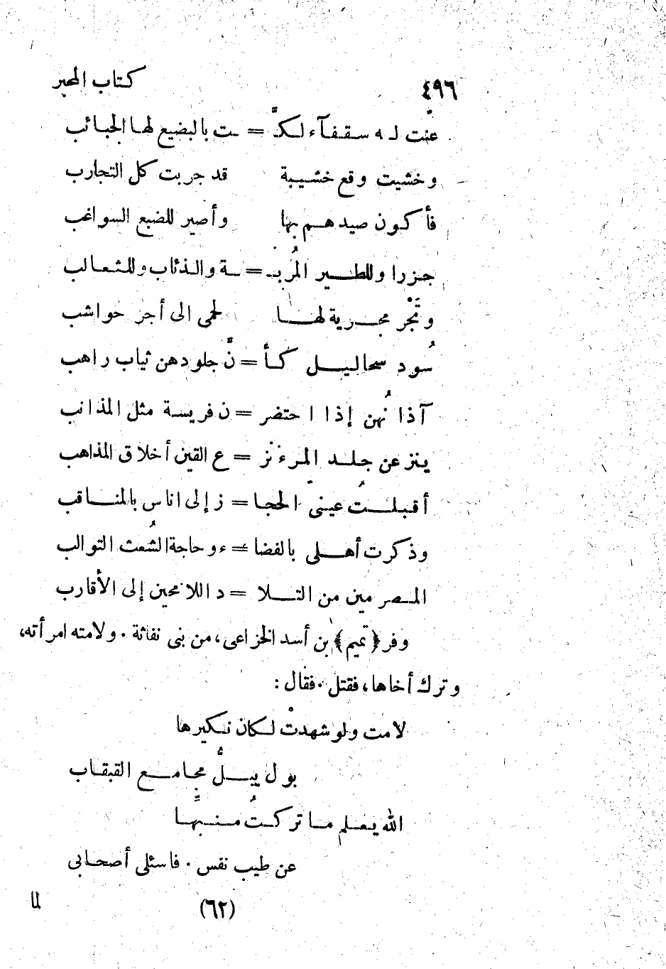 الله يعلم ما تركتُ منبهِّا ... عن طيب نفس. فاسئلى أصحابى