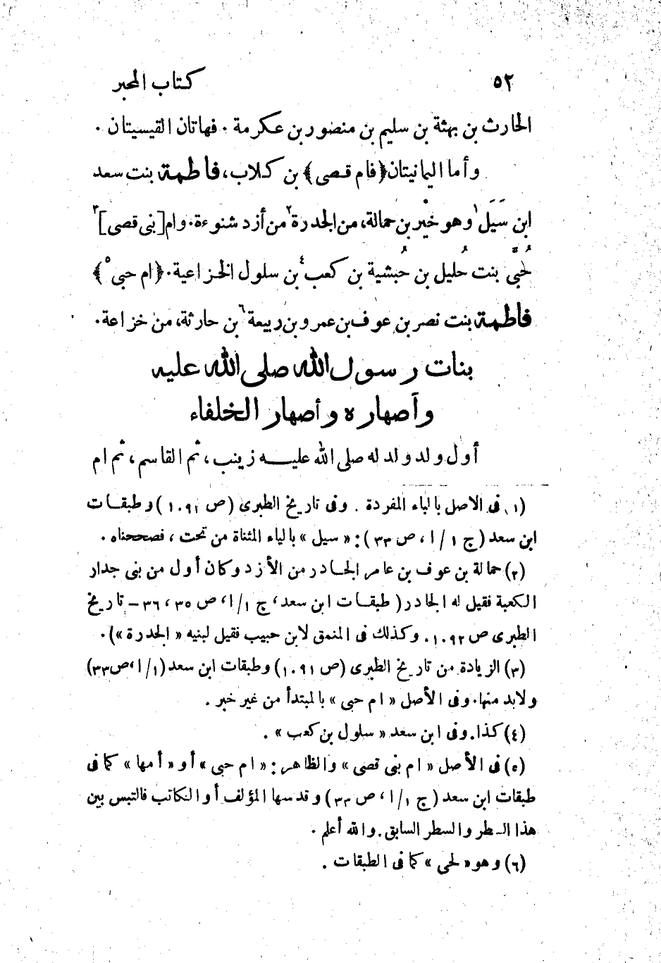 [5] فى الأصل «ام بنى قصى» والظاهر: «ام حبى» أو «أمها» كما فى طبقات ابن سعد (ج 1/ 1، ص 33) وقدسها المؤلف أو الكاتب فالتبس بين هذا السطر والسطر السابق. والله أعلم.
