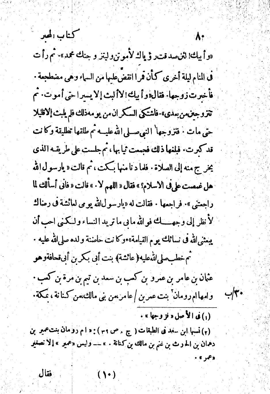 [2] نسبها ابن سعد فى الطبقات (ج 8 ص 39) : «ام رومان بنت عمير بن دهمان بن الحارث بن غنم بن مالك بن كنانة.» - وليس «عمير» إلا تصغير «عمر» .
