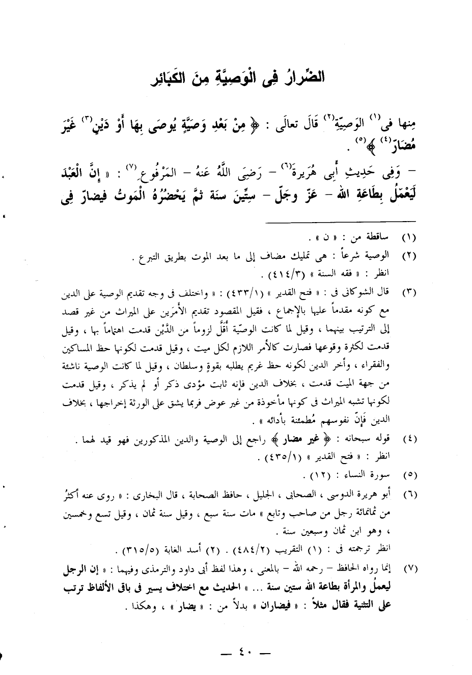 وفى حديث أبى هريرة - رضى الله عنه - المرفوع: (إِنَّ العَبدَ لَيَعمَلُ بِطَاعَةِ الله - عَزّ وجَلّ - سِتّينَ سنَة ثمَّ يَحضُرُهُ المَوتُ فيضارّ في