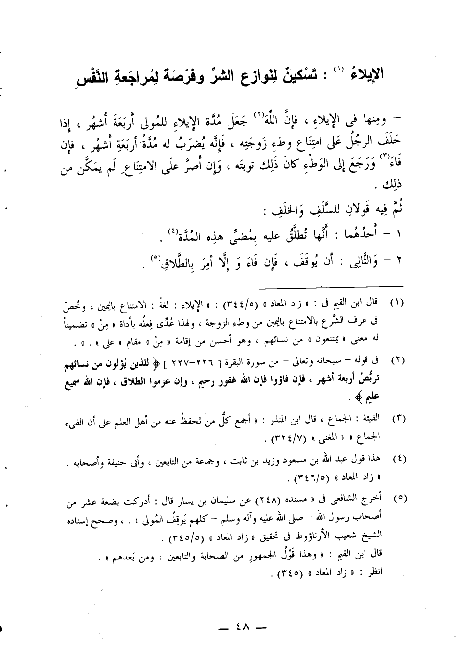 ومنها في الإيلاء، فإن الله جعل مدة الإيلاء للمولى أربعة أشهر، إذا حلف الرجل على امتناع وطء زوجته، فإنه يضرب له مدة أربعة أشهر، فإن فاء ورجع إلى الوطء كان ذلك توبته، وإن أصر على الامتناع لم يمكن من ذلك.