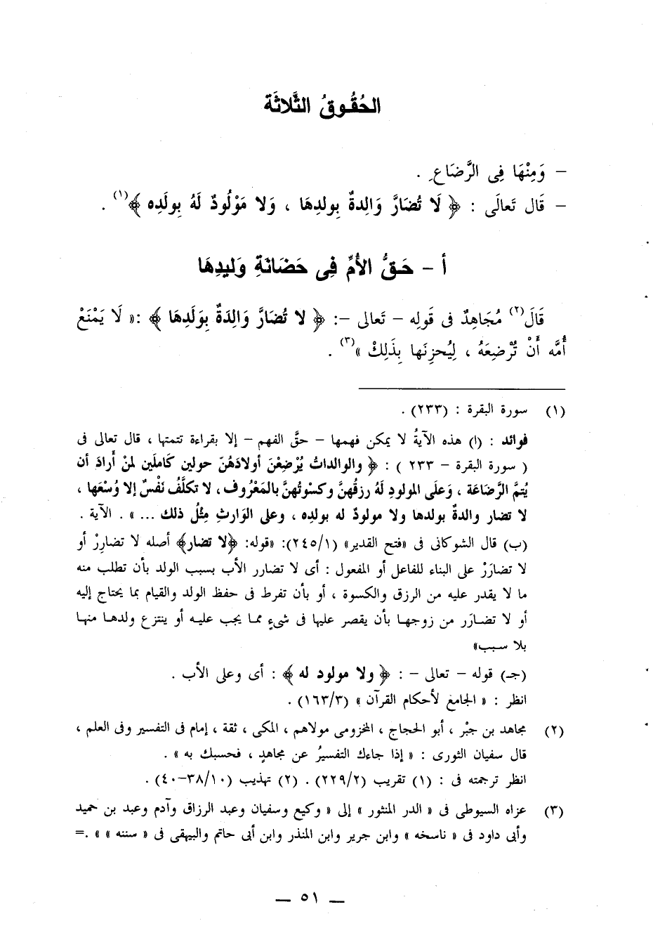 قال تعالى: (لاَ تُضَارَّ وَالِدةٌ بِولِدهَا، وَلا مَولُودٌ لَهُ بِولَدِه) .