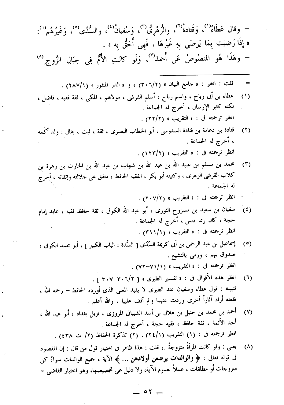 وقال عطاء، وقتادة، والزهرى، وسفيان، والسدى، وغيرهم: (إذا رضيت بما يرضى به غيرها، فهى أحق به) .