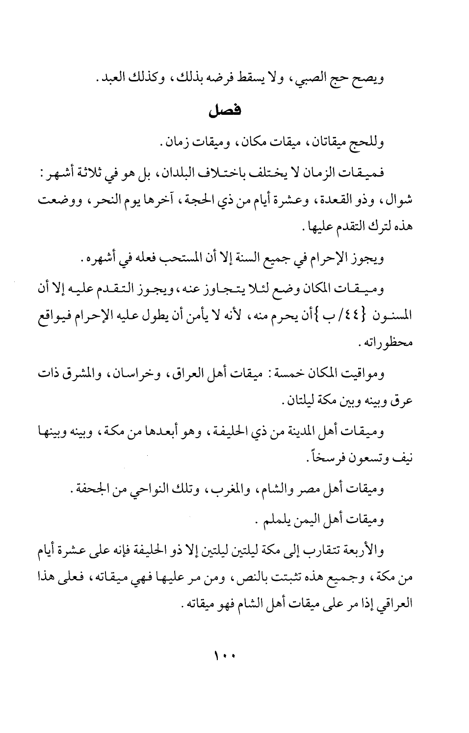ومواقيت المكان خمسة: ميقات أهل العراق، وخراسان، والمشرق ذات عرق وبينه وبين مكة ليلتان.