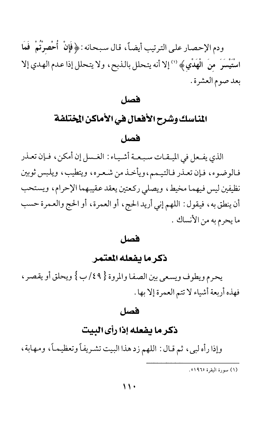 المناسك وشرح الأفعال في الأماكن المختلفة