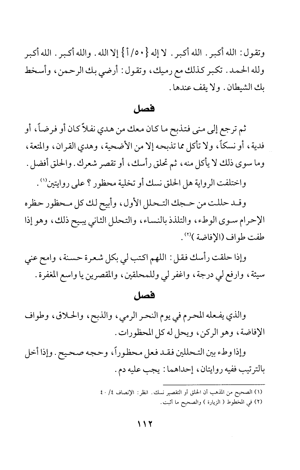 (¬1) الصحيح من المذهب أن الحلق أو التقصير نسك. انظر: الإنصاف 4/ 40