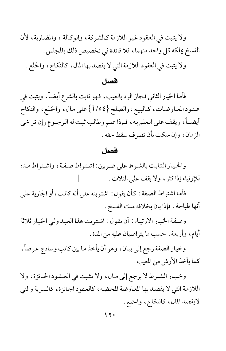 والخيار الثابت بالشرط على ضربين: اشتراط صفة، واشتراط مدة للإرتياء إذا كثر، ولا يقف على الثلاث.