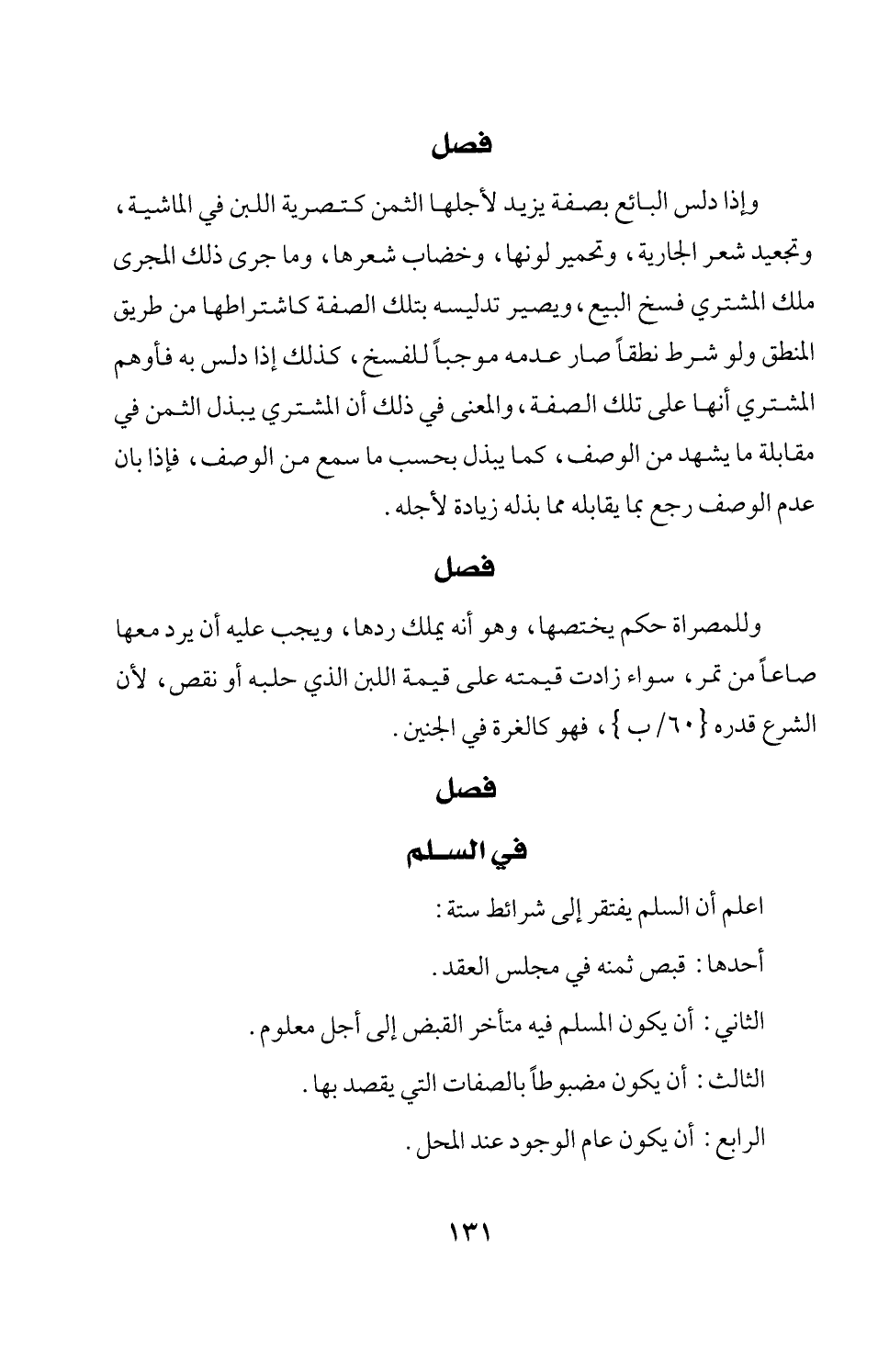 اعلم أن السلم يفتقر إلى شرائط ستة: