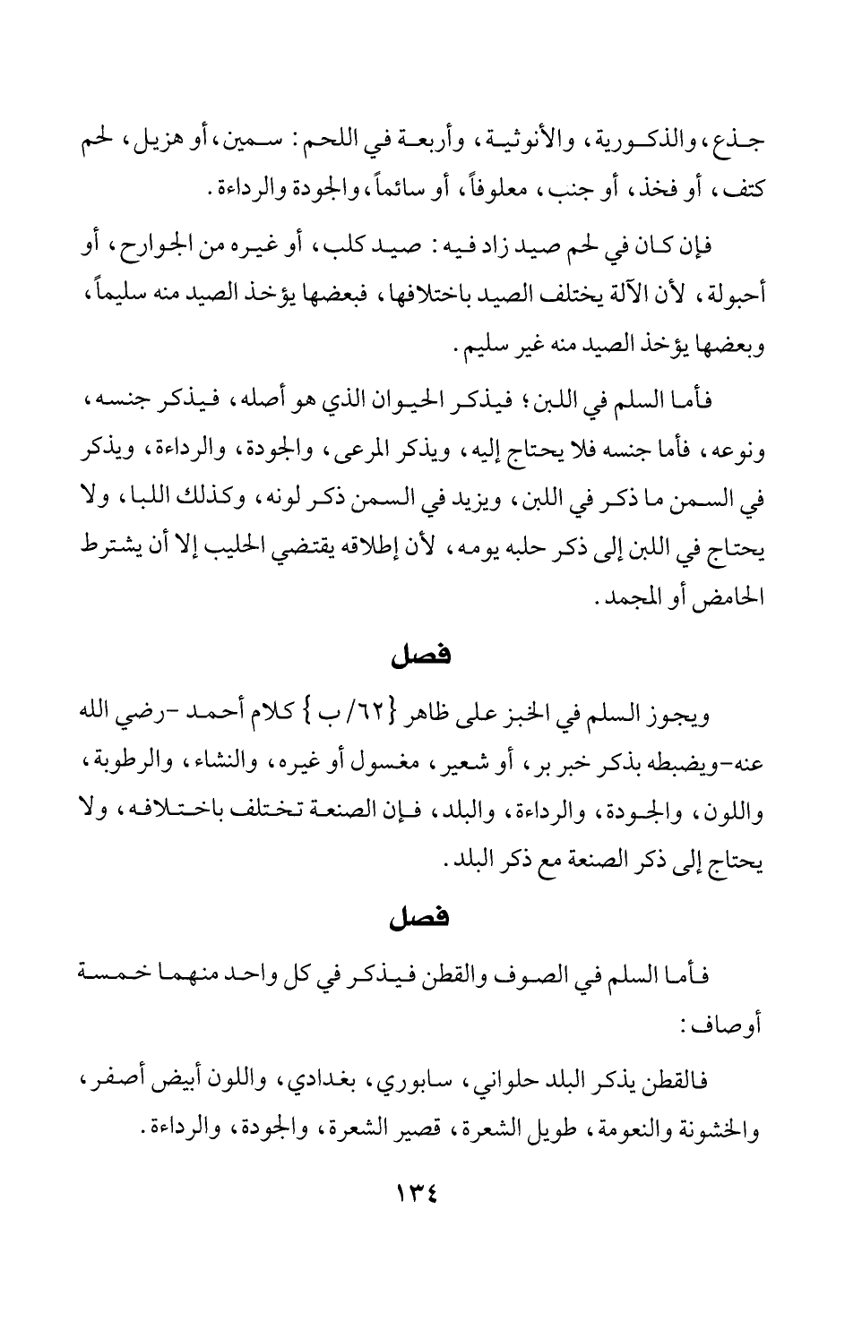 فأما السلم في الصوف والقطن فيذكر في كل واحد منهما خمسة أوصاف: