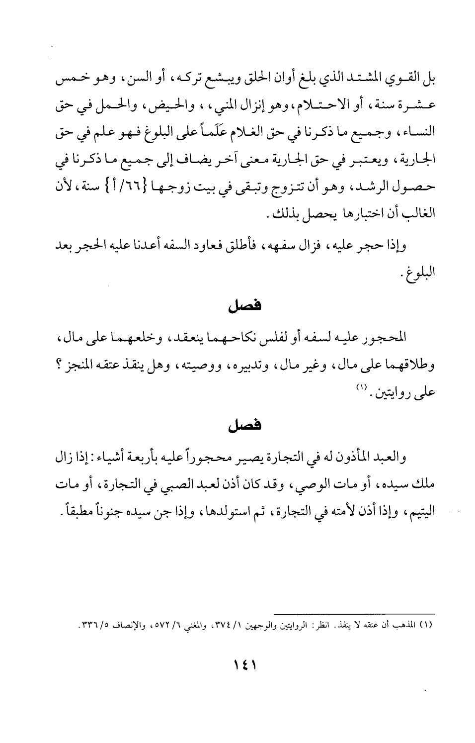 (¬1) المذهب أن عتقه لا ينفذ. انظر: الروايتين والوجهين 1/ 374، والمغني 6/ 572، والإنصاف 5/ 336.