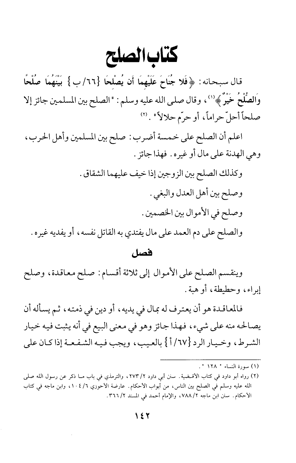 (¬2) رواه أبو داود في كتاب الأقضية. سنن أبي داود 2/ 273، والترمذي في باب ما ذكر عن رسول الله صلى الله عليه وسلم في الصلح بين الناس، من أبواب الأحكام. عارضة الأحوزي 6/ 104، وابن ماجه في كتاب الأحكام. سنن ابن ماجه 2/ 788، والإمام أحمد في المسند 2/ 366.