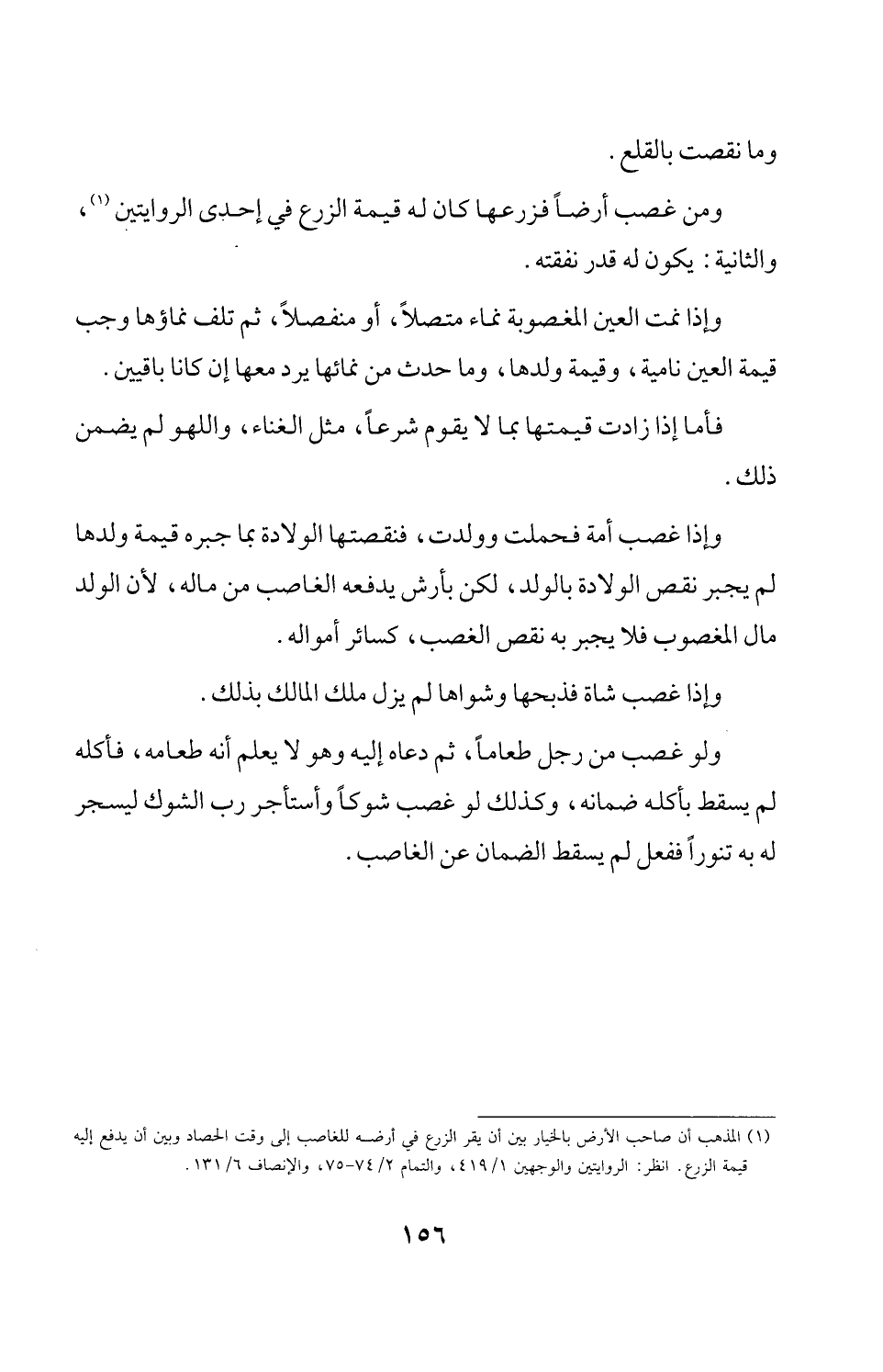 (¬1) المذهب أن صاحب الأرض بالخيار بين أن يقر الزرع في أرضه للغاصب إلى وقت الحصاد وبين أن يدفع إليه قيمة الزرع. انظر: الروايتين والوجهين 1/ 419، والتمام 2/ 74 - 75، والإنصاف 6/ 131.