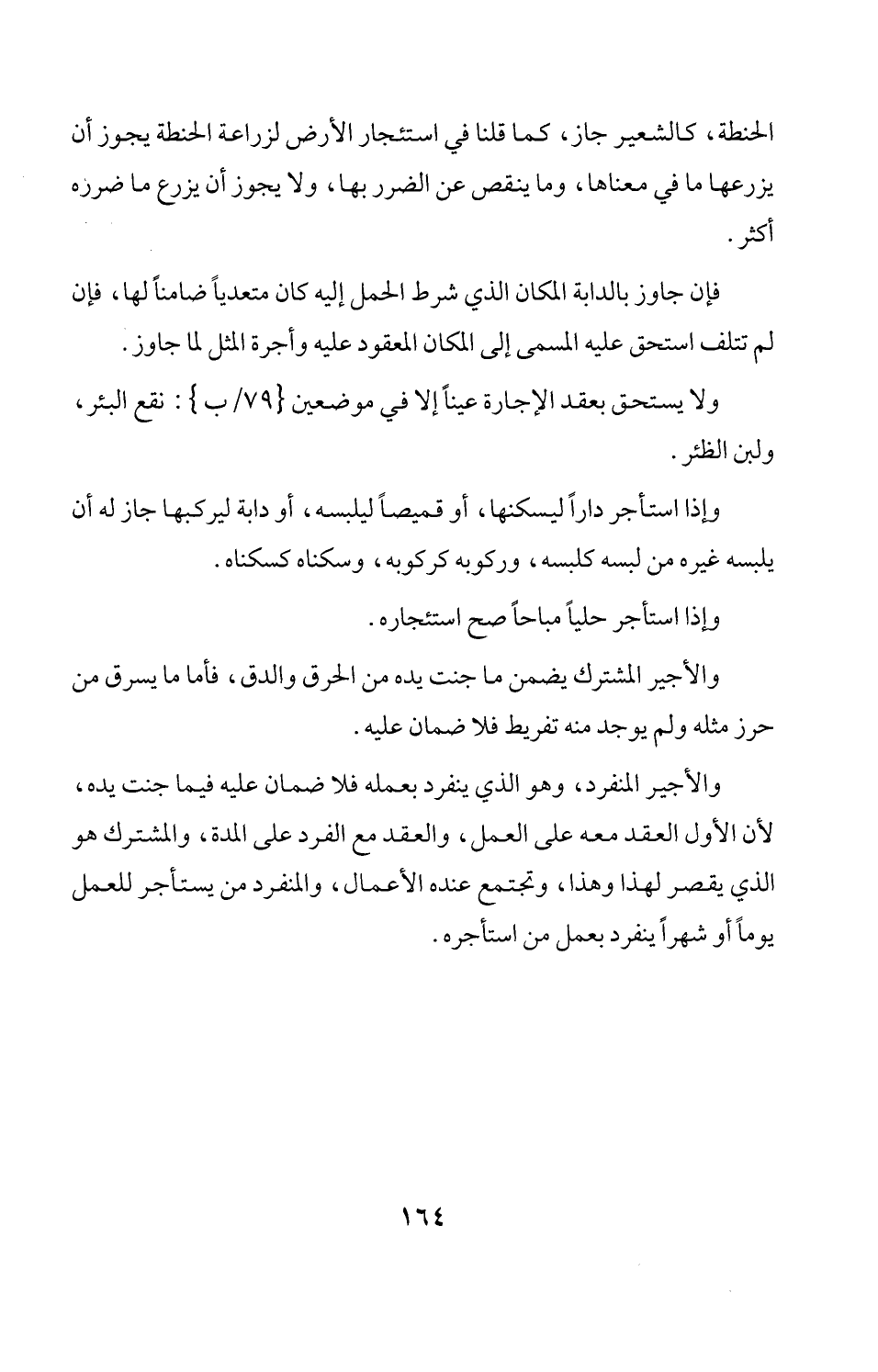 والأجير المنفرد، وهو الذي ينفرد بعمله فلا ضمان عليه فيما جنت يده، لأن الأول العقد معه على العمل، والعقد مع الفرد على المدة، والمشترك هو الذي يقصر لهذا وهذا، وتجتمع عنده الأعمال، والمنفرد من يستأجر للعمل يوماً أو شهراً ينفرد بعمل من استأجره.