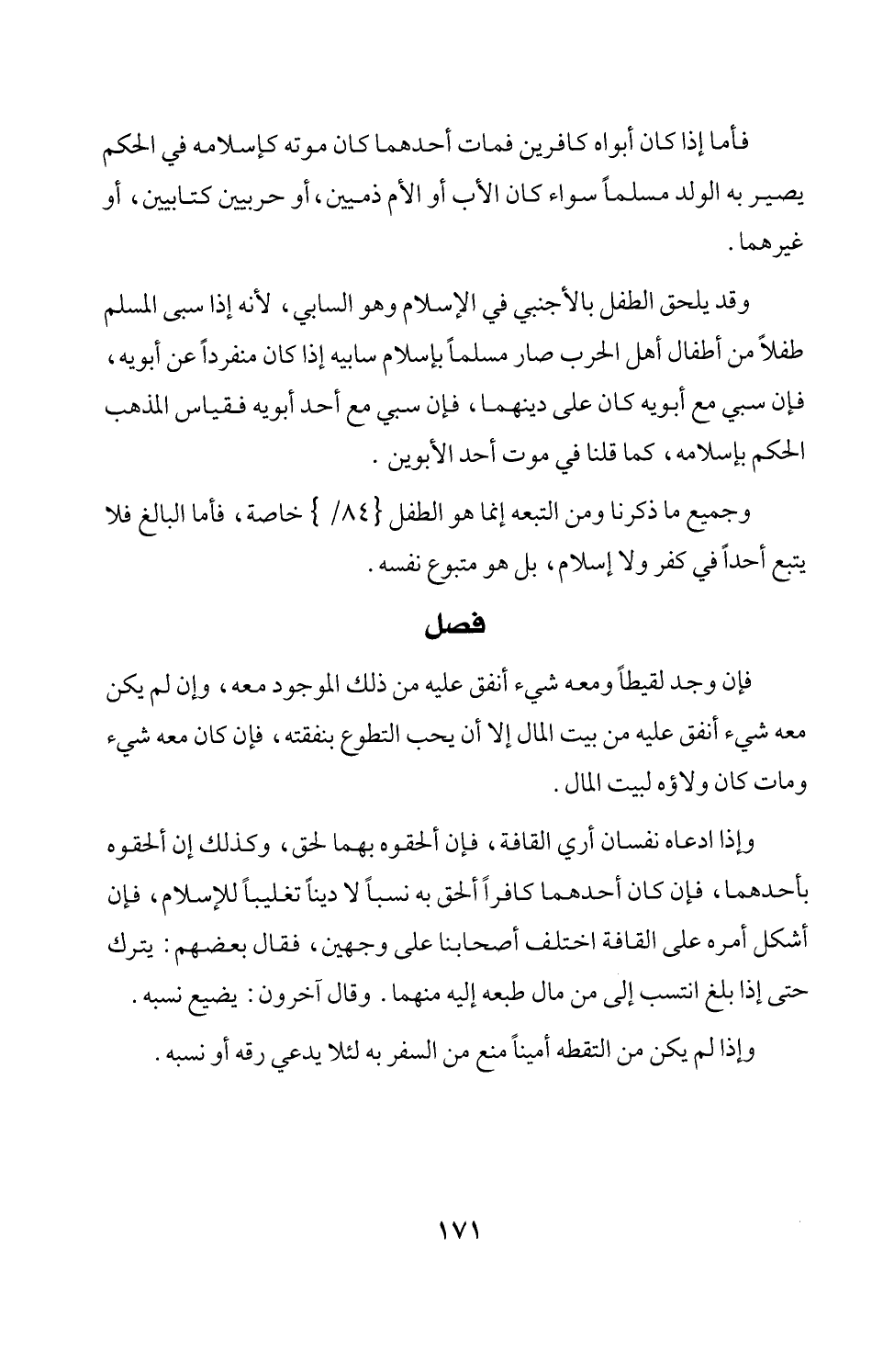 وجميع ما ذكرنا ومن التبعه إنما هو الطفل {84/أ} خاصة، فأما البالغ فلا يتبع أحداً في كفر ولا إسلام، بل هو متبوع نفسه.